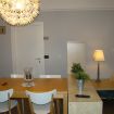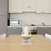 L’ampio soggiorno, finemente arredato sui toni del grigio chiaro e bianco, è composto da una funzionale cucina a vista, completamente attrezzata, tavolo da pranzo e zona living con divano letto, poltrone e smartTV.