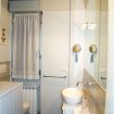 Il nuovissimo bagno, con finestra, è dotato di box doccia, WC, bidet, lavabo e lavatrice ad incasso.