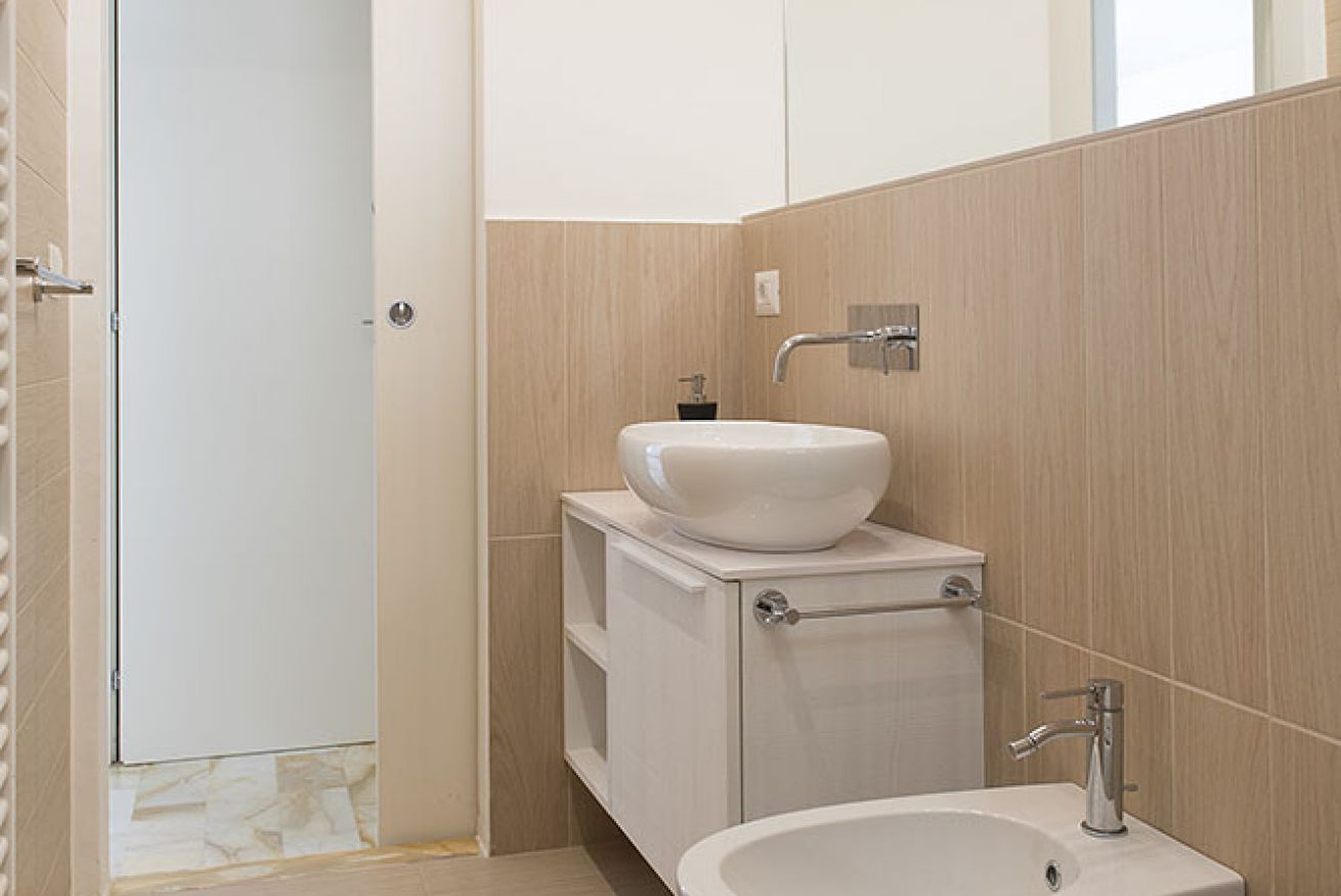 La zona notte ha 2 camere da letto e 2 bagni: una spaziosa matrimoniale o due letti (che può accogliere anche un letto supplementare o un lettino da campeggio) con accesso alla terrazza ed una seconda camera doppia o matrimoniale con nuovissimo bagno in camera con ampio box doccia in cristallo e lavatrice. La zona notte è completata da un secondo bagno con grande box doccia in cristallo, wc, bidet e lavabo.
